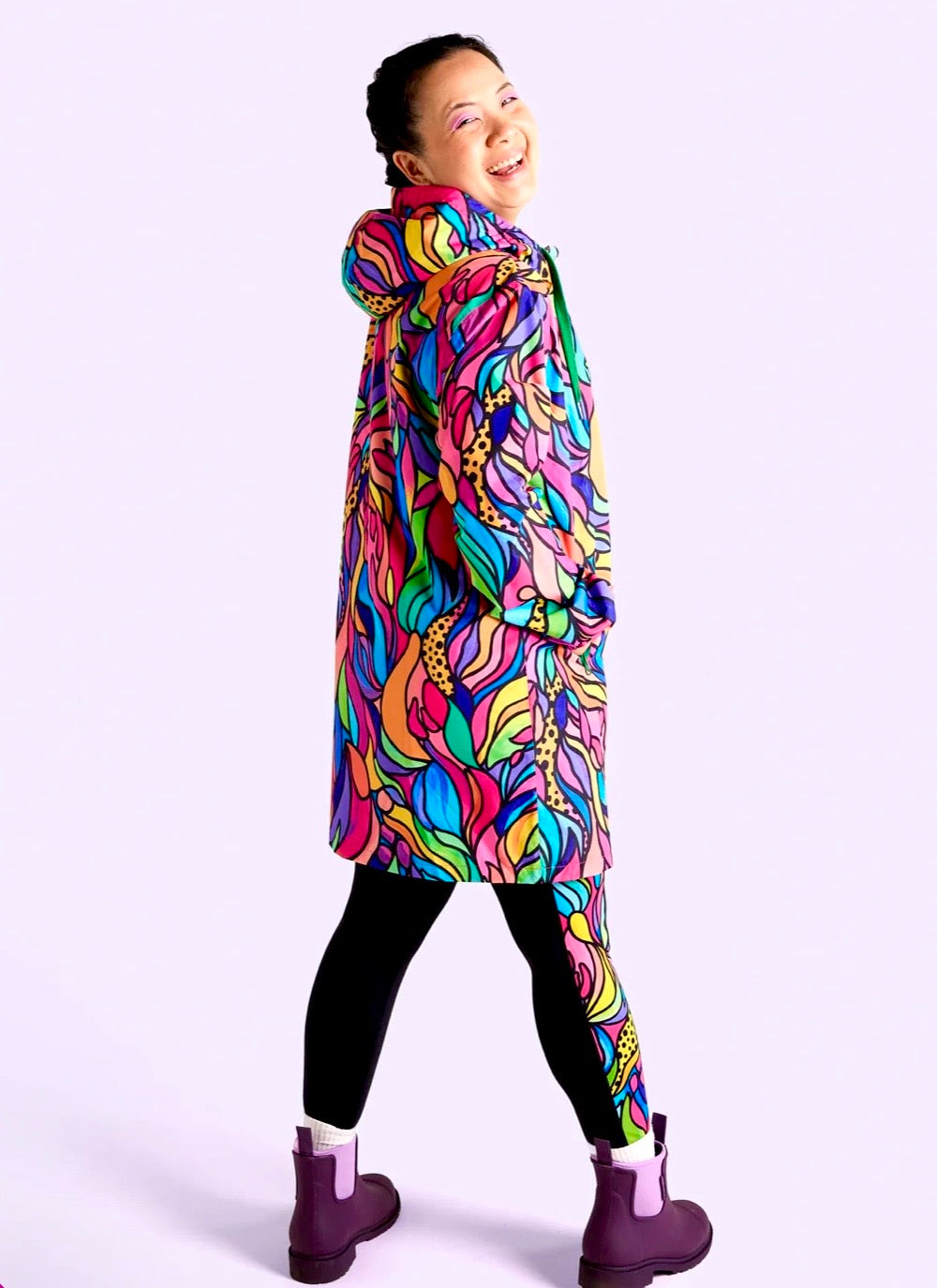 STAY DRY IN COLOURFUL STYLE! Our raincoats have become one of our BEST SELLERS in the range. So it was time that we extended on that range and introduce a NEW longline style! With all the features you know and love about our iconic design – properly waterproofed (to 10,000mm!), fully lined, made from recycled plastic bottles, and showcasing stunning artwork by female Australian artists.