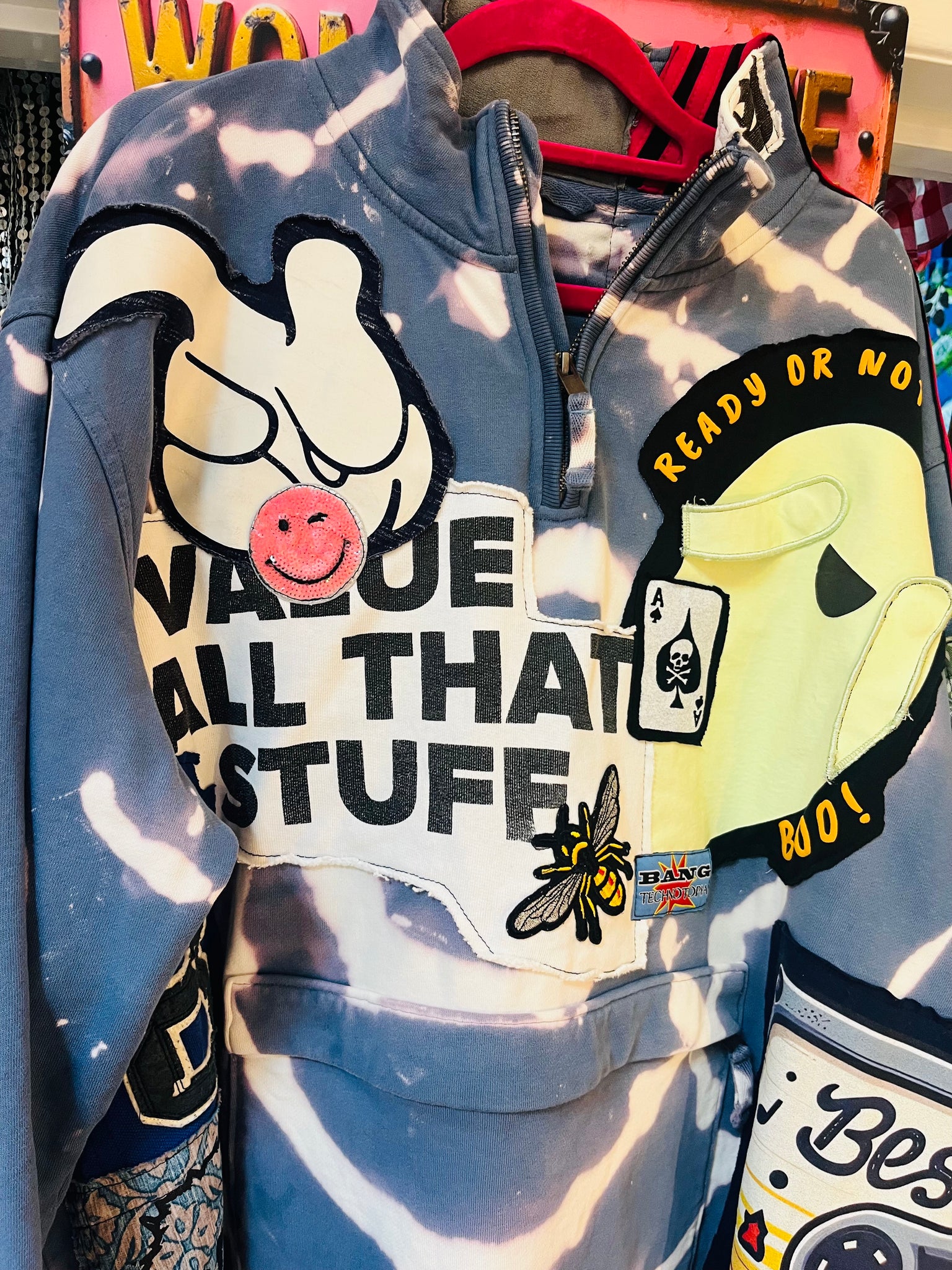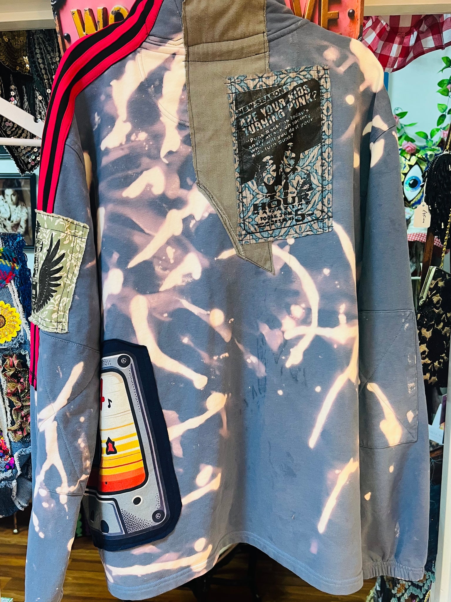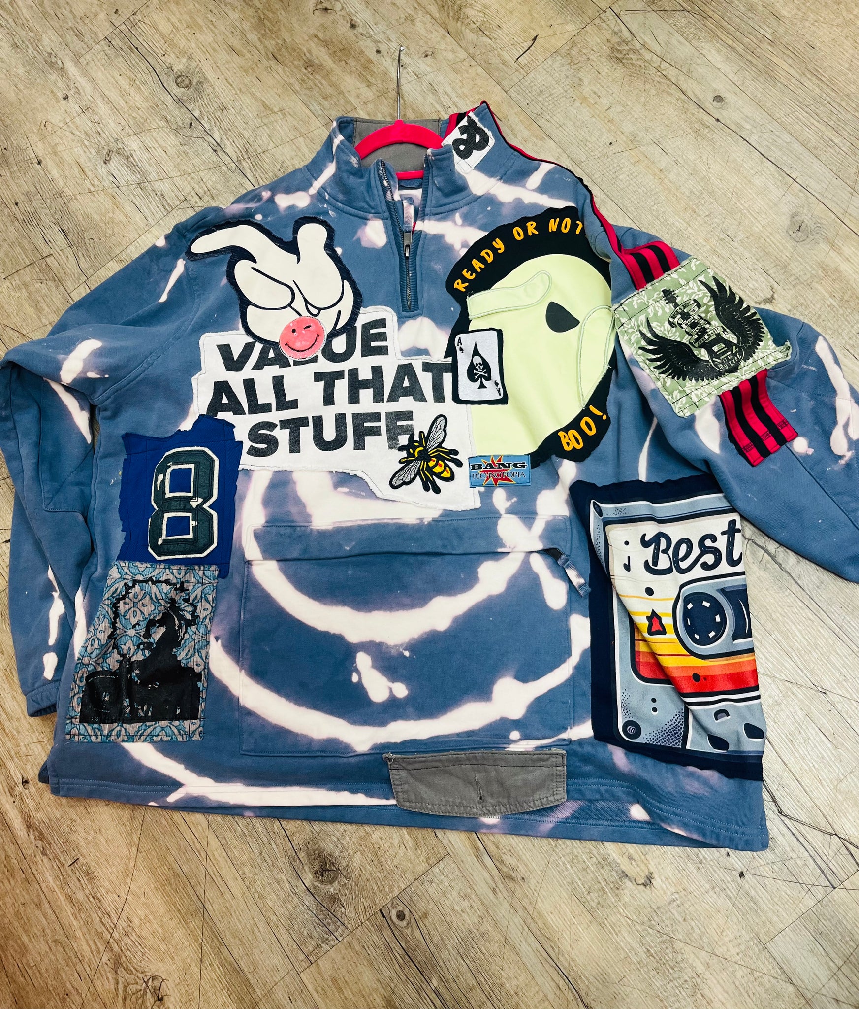 Bleach dye Sweat with Individually Sewn Logos & Patches
