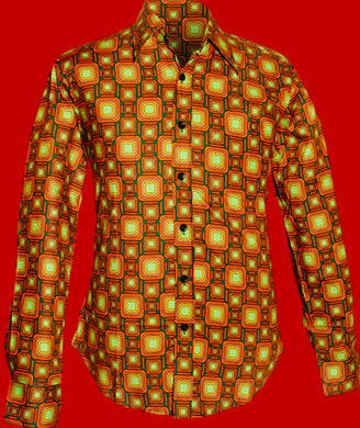 Tube Design longsleeved Retro 70s Shirt in Green-Orange- light brown