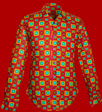 Cone of Light Design Long Sleeved Retro 70s style shirt in Black-Red -Rose