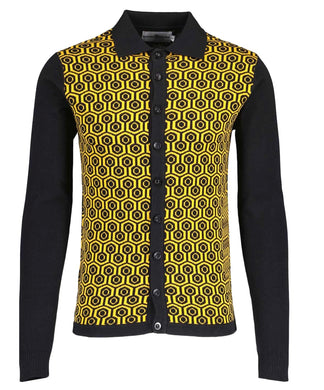 Madcap Overlook Retro Honeycomb Knit Polo Cardigan in Golden Glow
