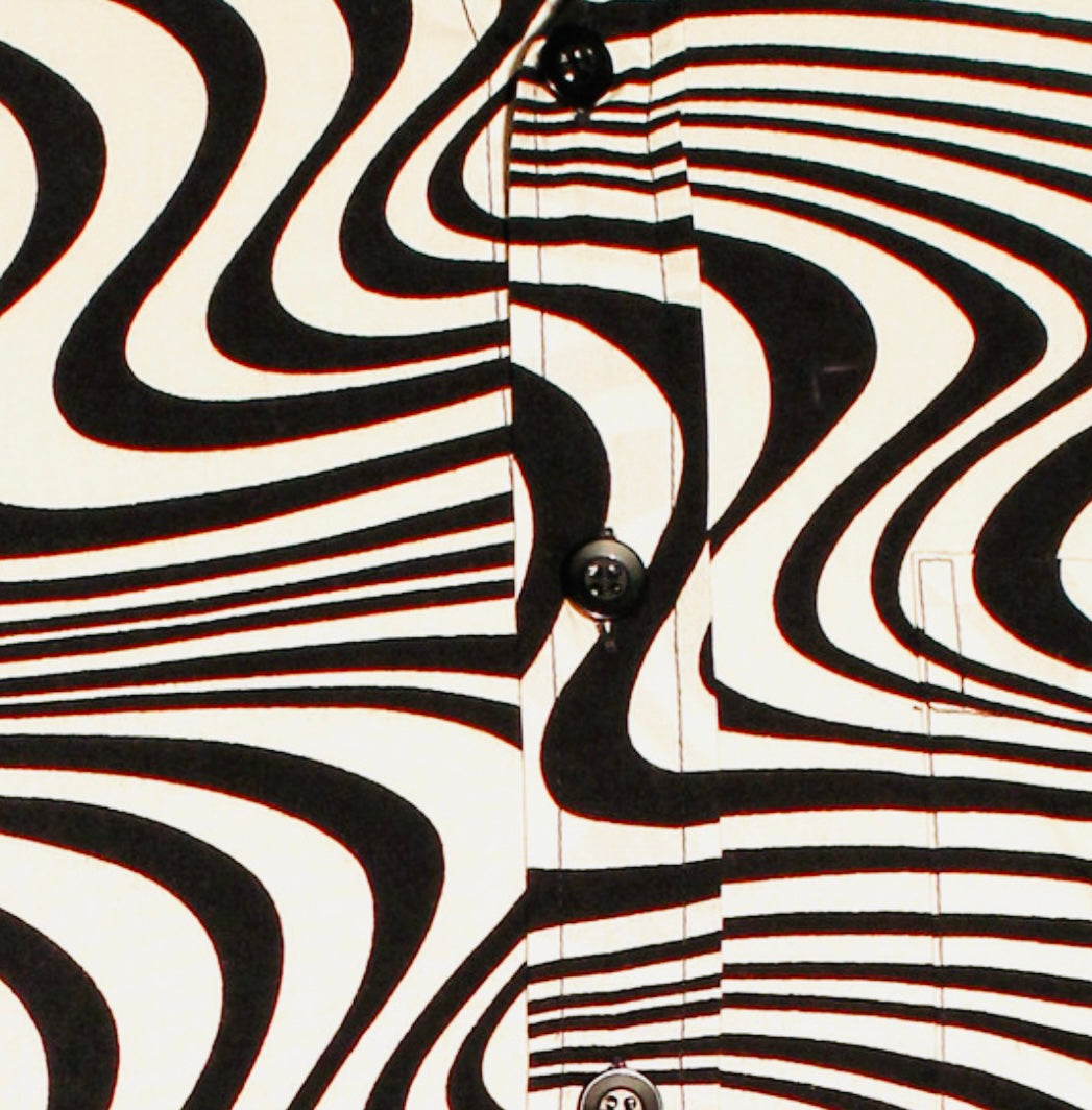 Wavy line Design Longsleeve 70s Retro Shirt- black creme
